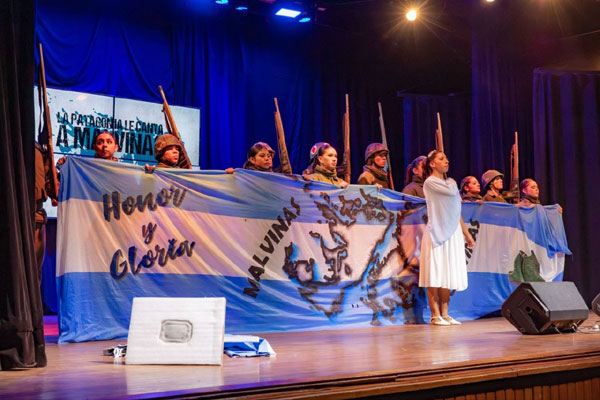 La propuesta se desarrolló en la Casa de la Cultura, donde se contó con una masiva participación del público, junto a la presencia de Veteranos de Malvinas, autoridades, vecinos y vecinas, que colmaron la sala en una jornada profundamente emotiva.