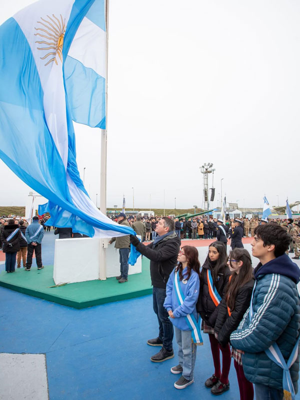 RÍO GRANDE.– En una mañana marcada por el clima austero y desafiante que caracteriza a nuestra tierra, la ciudad volvió a reunirse este 2 de abril para rendir homenaje a quienes dejaron todo por la patria, en el marco del Día del Veterano y de los Caídos en la Guerra de Malvinas.