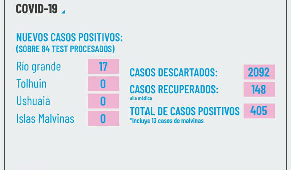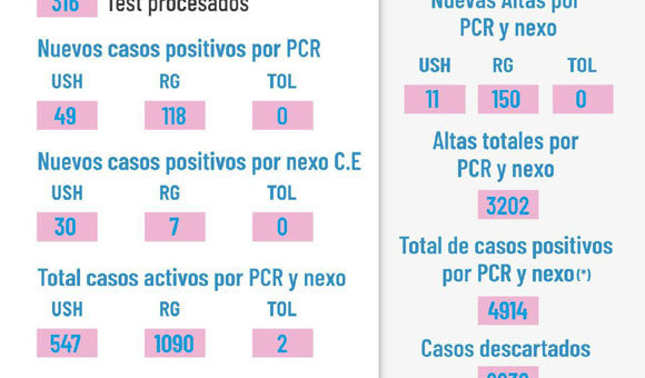 USHUAIA.- La Dirección de Epidemiología e Información de la Salud del Ministerio de Salud del Gobierno de la Provincia de Tierra del Fuego, Antártida e Islas del Atlántico Sur informa el reporte diario provincial...
