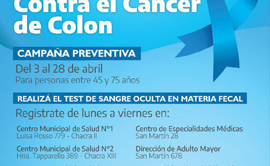 RIO GRANDE.- Se trata de una iniciativa por el Día Mundial de la Prevención y Vigilancia del Cáncer Colorectal. Las atenciones serán en los 3 Centros de Salud y en el Centro de Especialidades...