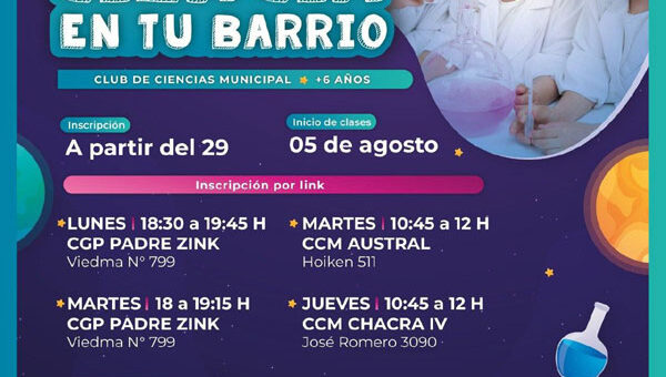 rio grande.- El Municipio de Río Grande recuerda a la comunidad que continúan las inscripciones para el Club “Ciencia en tu barrio”. Los cupos son limitados, quienes se quieran sumar deben registrarse en...